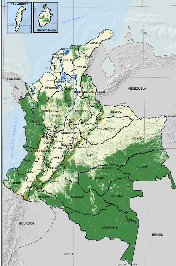 Estos datos hacen referencia al área con bosque y no bosque para todo Colombia, a escala de 30 metros. También se suman algunas zonas sin información, producto de la presencia de problemas en el bandeado del satélite Landsat.