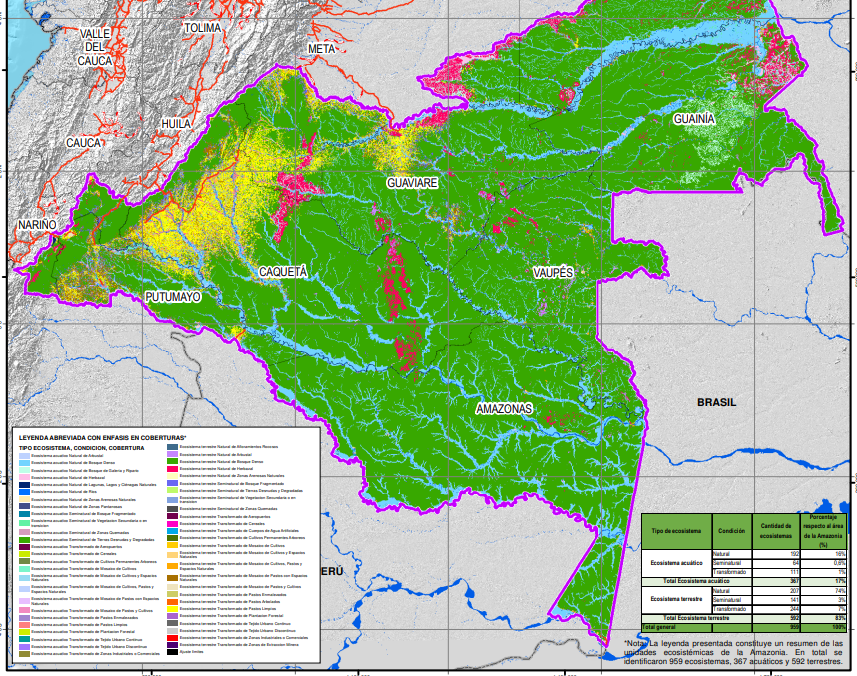 La entidad a cargo de esta información es SINCHI (Instituto Amazónico de Investigaciones Científicas), y esta disponible para descarga en formato Shapefile a escala de 1:100.000, es posible hacer la descarga desde la plataforma de SIAC, dar en buscar con la palabra «Ecosistemas».